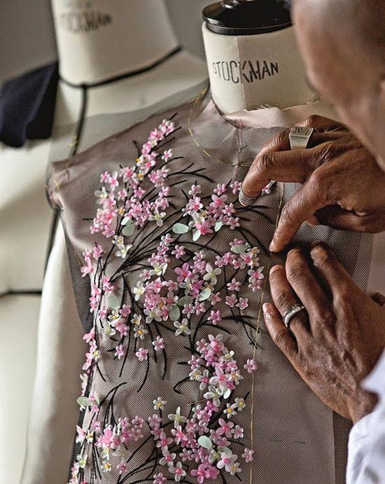 Découvrez la broderie Haute Couture. Broderie d’or, broderie à l’aiguille, broderie au crochet de Lunéville, broderie au ruban…Venez vous évader dans un monde de perles et de paillettes.